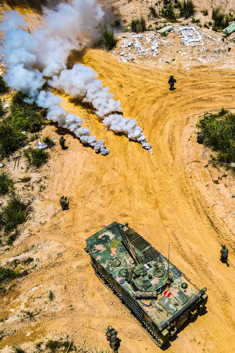 陸軍第73集團軍某旅“強軍精武紅四連”組織官兵開展連貫戰術訓練(2023年5月30日攝)。