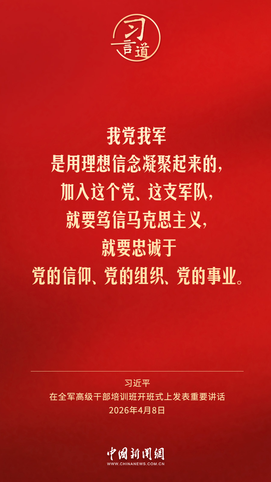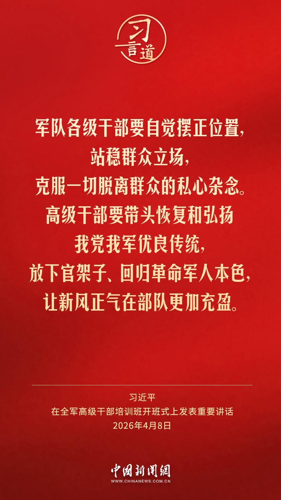 全軍高級干部培訓班8日在國防大學開班。中共中央總書記、國家主席、中央軍委主席習近平出席開班式并發表重要講話。他強調——