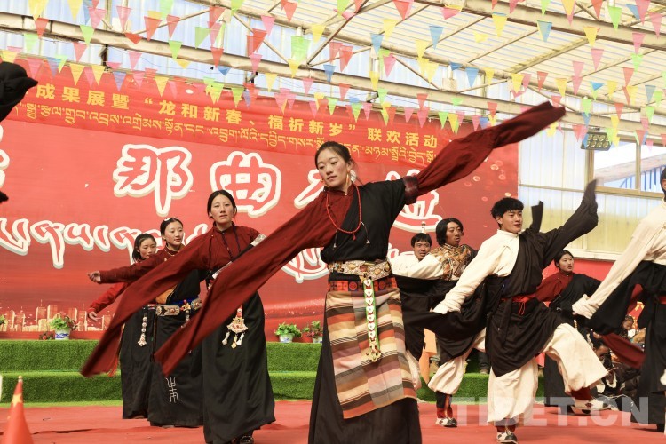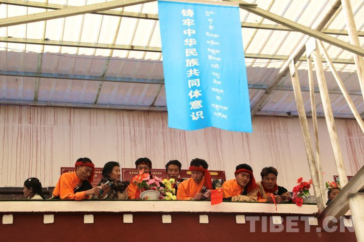 中國(guó)西藏網(wǎng)訊 2月10日,中國(guó)西藏信息中心“新春走基層”青藏線采訪組一行,來到西藏自治區(qū)那曲市安多縣灘堆鄉(xiāng),適逢當(dāng)?shù)卦谂e辦灘堆鄉(xiāng)第二屆“鄉(xiāng)村振興 那曲奮進(jìn)”藝術(shù)成果展暨“龍和新春、福祈新歲”聯(lián)歡活動(dòng)。采訪組一行來到鄉(xiāng)政府對(duì)面的灘堆鄉(xiāng)文化站,記者在現(xiàn)場(chǎng)看到許多穿著具有當(dāng)?shù)孛褡逄厣椀娜嗽诖司奂?。在好奇心的?qū)使下,經(jīng)詢問當(dāng)?shù)馗刹坎胖溃瑸橄灿?024春節(jié)和藏歷新年,感激黨和國(guó)家的關(guān)心關(guān)懷,歌頌如今來之不易的幸福生活,鄉(xiāng)村文藝隊(duì)特此精心準(zhǔn)備了文藝節(jié)目,以嶄新的面貌和昂揚(yáng)的精神展現(xiàn)新時(shí)代牧民群眾的精神風(fēng)貌和幸福生活。