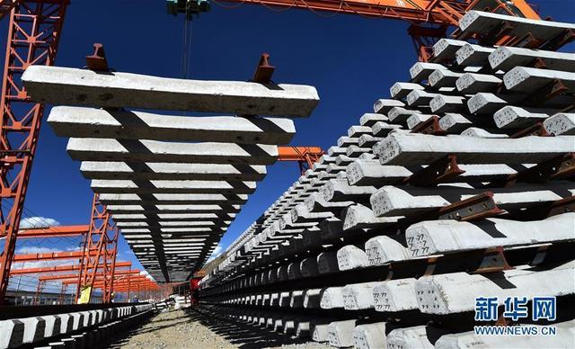 2018年9月19日,在位于西藏拉薩曲水縣的中鐵十一局三公司協榮鋪架基地,用于架設川藏鐵路拉薩至林芝段(拉林鐵路)的首批軌排完成生產下線。覺果 攝