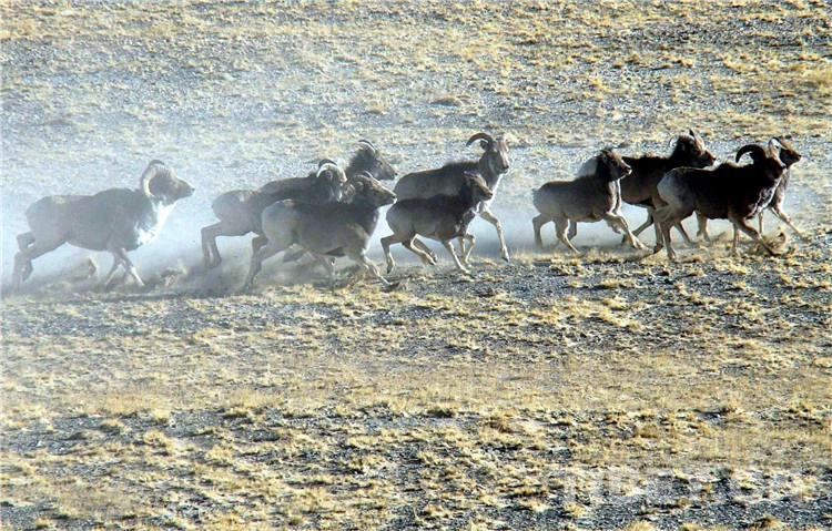 圖為奔跑在羌塘國家級自然保護區的國家二級保護動物盤羊(2006年) 攝影:唐召明