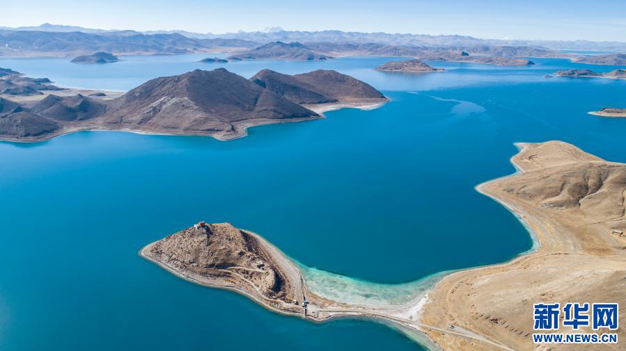這是1月10日拍攝的羊卓雍錯(cuò)景色(無人機(jī)照片)。新華社記者 孫非 攝