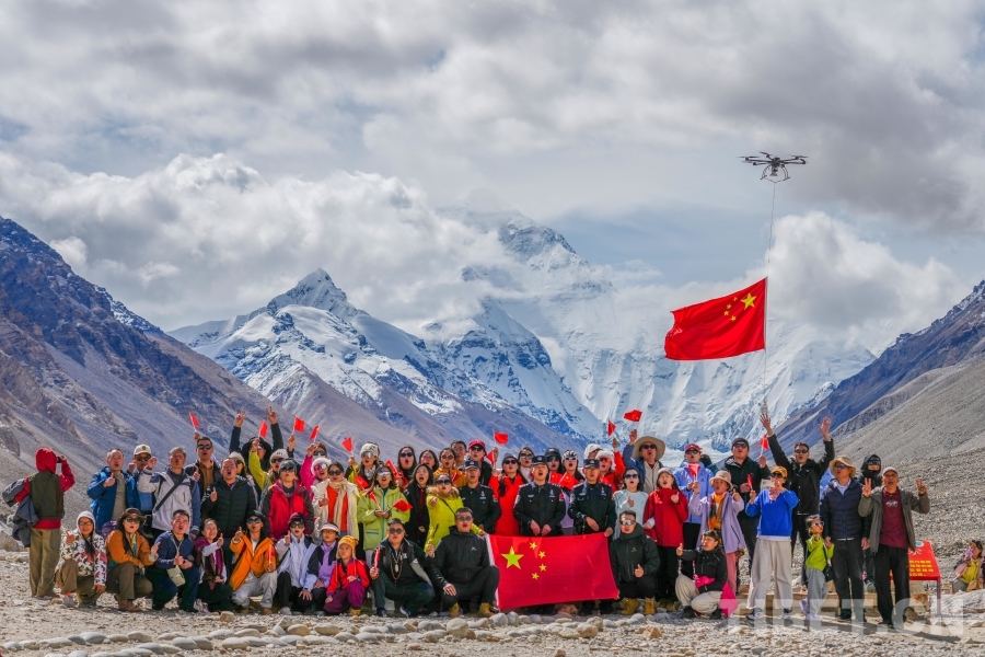西藏日喀則市崗巴縣崗巴鎮吉汝村有一塊地勢較高的山坡,2021年,當地村委會用石頭和混凝土在斜坡上砌了一面黨旗和一面國旗,中間有“祖國萬歲”四個白色大字,在村口就能看見這處景觀,十分醒目。每年國慶節前夕,派出所都會組織駐地干部群眾來這里刷新描紅,只要沒休假,嘎色每次都會參加。