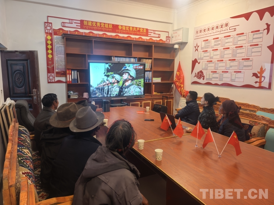中國西藏網訊 9月3日,紀念中國人民抗日戰爭暨世界反法西斯戰爭勝利80周年大會在北京隆重舉行。人民銀行日喀則市分行駐昂仁縣日吾其鄉普夏村工作隊組織全體黨員和群眾代表觀看了大會直播,共同見證這一重要歷史時刻。