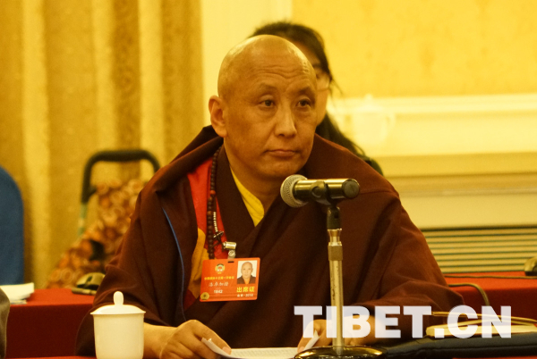 圖為洛卓加措在政協宗教界別小組會上發言