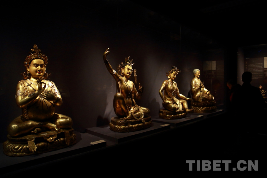 中國西藏網訊 日前,《天路文華——西藏歷史文化展》在首都博物館展出。展品匯集了北京、西藏、河北、重慶、青海五省(市、自治區)21家文物收藏單位共216件(組)文物。其中展出了大量的藏傳佛教造像,涵蓋了藏傳佛教寧瑪派、薩迦派、噶當派、噶舉派的佛像精品。