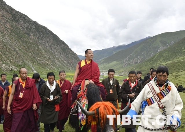 陽光雨露滋潤下,夏季的牧場上到處呈現出翠綠欲滴、生機勃勃的景致,鮮艷的野花與成群的牦牛更是給綠草如茵的牧場鑲嵌上靚麗的花邊。考察完雪林斯布牧場專業合作社后,十一世班禪一行來到放牧點,考察調研夏季牧場放牧點等情況。在這里,十一世班禪即興策馬徐行,展現出活力青春、風華正茂的一面。