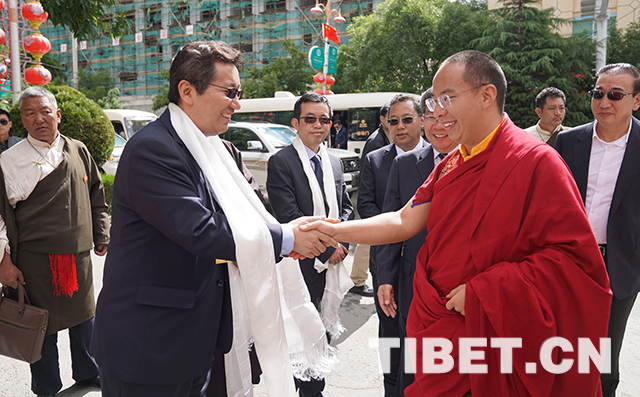 十一世班禪與前來迎接的山南市有關(guān)領(lǐng)導(dǎo)握手致意。攝影:王淑