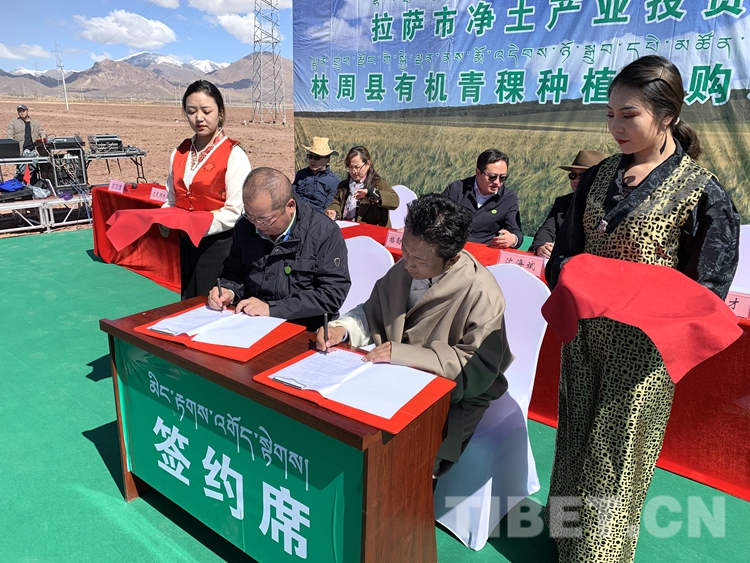 中國西藏網(wǎng)訊 4月23日,拉薩凈土產(chǎn)業(yè)集團在林周縣舉行有機青稞種植收購示范項目簽約啟動儀式。