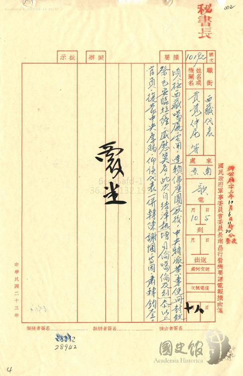 圖為貢覺仲尼轉西藏地方給中央政府的電報