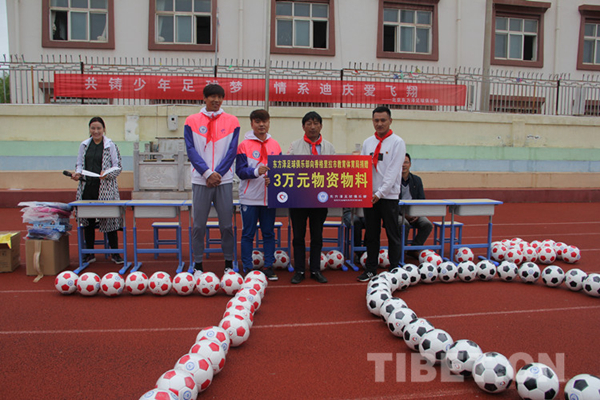 得知香格里拉紅旗小學和金江鎮小學是全國青少年足球特色學校,都組建了自己的足球隊,孩子們非常熱愛足球運動,許湛和鄭超分別于9日和10日來到兩所學校跟小隊員們互動,現場足球教學,并為兩所學校分別捐贈3萬元物資,包括上百個足球、服裝和學習用具等。