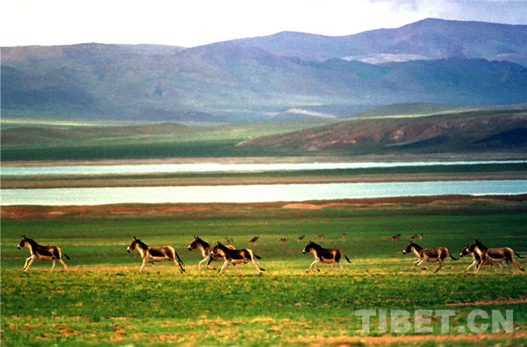 這是奔跑在羌塘國家級自然保護區的國家一級保護動物藏野驢。(唐召明2001年攝)