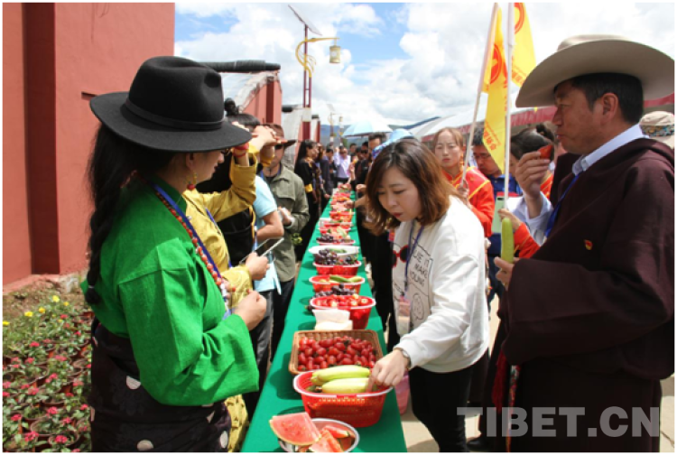 資料圖:在甘孜州農特產品產銷對接會理塘分會場上,極地果蔬受到商家和游客喜愛