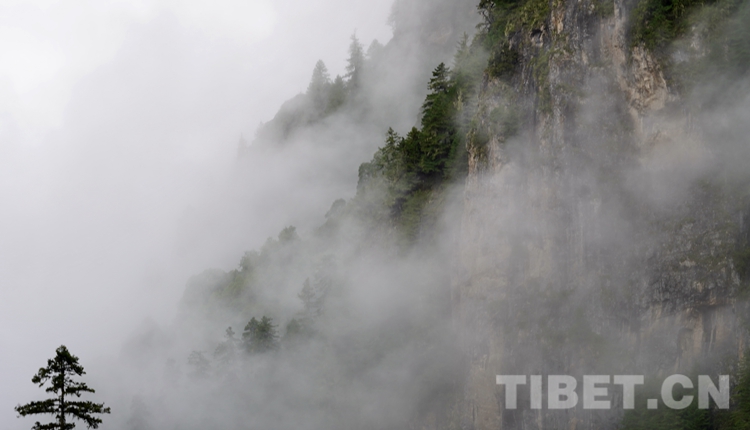 上午10點,我們正式出發,回到桑久鄉那個岔路口,沿著一條不寬的沙石路一路攀升。海拔從縣城的2360米上升到3000米以上,氣溫驟降,山路上松林密布,霧氣繚繞。路上偶爾能見到一輛摩托車,大多時候我們的車前車后竟無一人一車。在這個每平方公里只有一個人、森林覆蓋率達到60%的縣,如若孤身行進在路上,眼前是變幻的霧景,山脊上點綴著松樹,真是“橫看成嶺側成峰”,倒也無比愜意。