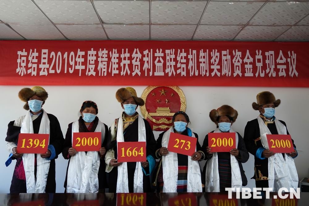 2020年3月26日,瓊結(jié)縣召開(kāi)精準(zhǔn)扶貧利益聯(lián)結(jié)機(jī)制獎(jiǎng)勵(lì)資金兌現(xiàn)會(huì)議,嘎瑪旺堆作為代表參加了會(huì)議,同時(shí)拿到了2000元的獎(jiǎng)勵(lì)資金。當(dāng)時(shí)他說(shuō):“2017年11月,黨的好政策讓我們一家摘掉了貧困戶的‘帽子’。今天領(lǐng)到了縣里獎(jiǎng)勵(lì)資金很激動(dòng),感謝黨、感謝政府。”