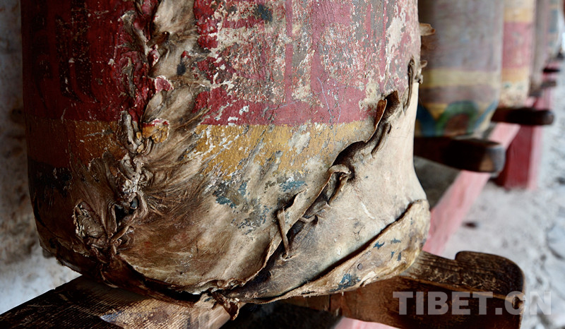 圖為縫補過的羊皮經筒