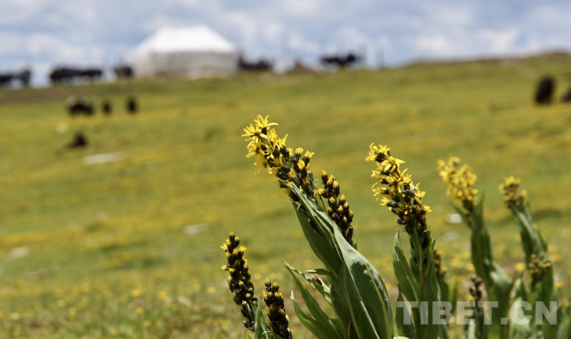 圖為默默開放在牧民帳篷附近的小野花