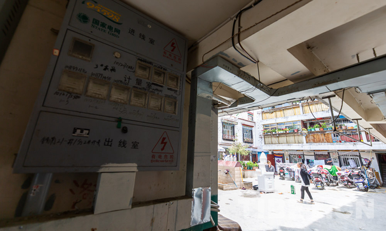 圖為旺堆生活的大院內“一戶一表”的電表箱 攝影:趙耀