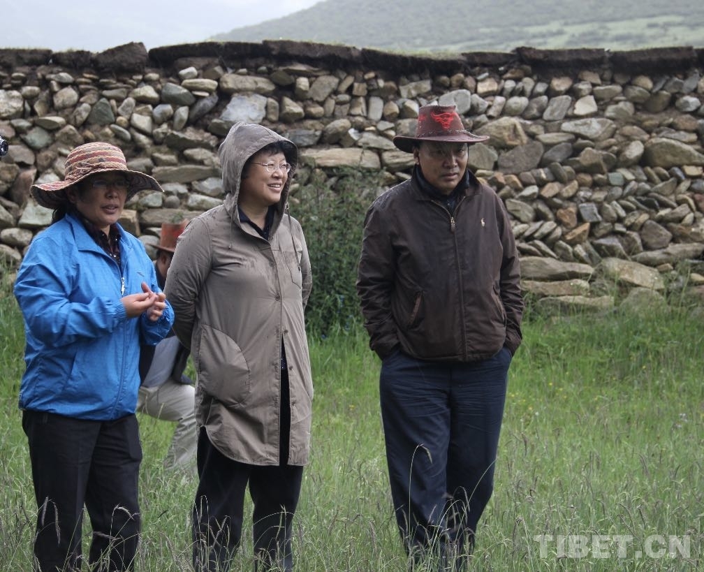 從左至右:圖為西藏農牧科學院畜牧所所長姬秋梅(項目第一主持人,藏族,博士)、劉艷、澤柏(藏族)在西藏自治區拉薩市墨竹工卡斯布牧場查看圏窩種植牧草技術示范
