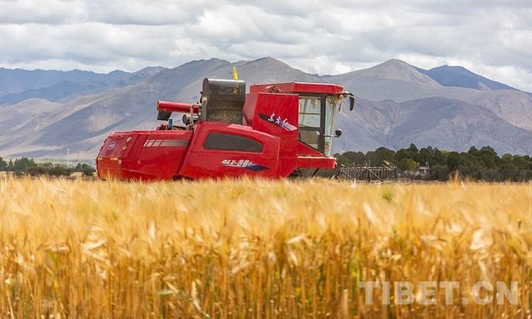 圖為聯(lián)合收割機正在青稞田里進行機械化作業(yè) 攝影:趙耀