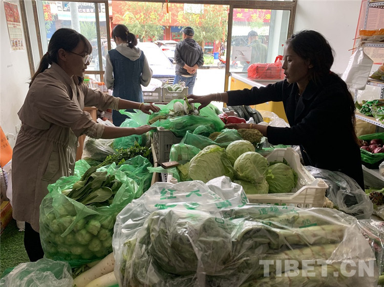 大棚有了,新鮮的蔬果源源不斷地從這里產出。但是村民們卻往往只能自己駕駛拖拉機,每天運送有限的農產品去縣里擺地攤賣菜。效率低、蔬果容易變質。為了解決村民們“單打獨斗”的問題,作為大學畢業生的格桑旺姆申領了5萬元的大學生創業補貼資助,兩人在白朗縣城開了一家蔬菜銷售店,并為自家的蔬菜定制了包裝盒,進一步打響品牌效應。有了固定的店面,新鮮蔬果的儲存問題得到了解決,每日銷量也變得更好。格桑旺姆在大學的專業正好就是會計,姐妹倆分工:姐姐管理大棚、培訓雇工,妹妹負責果蔬銷售和店鋪運營,兩人密切合作,事業蒸蒸日上。