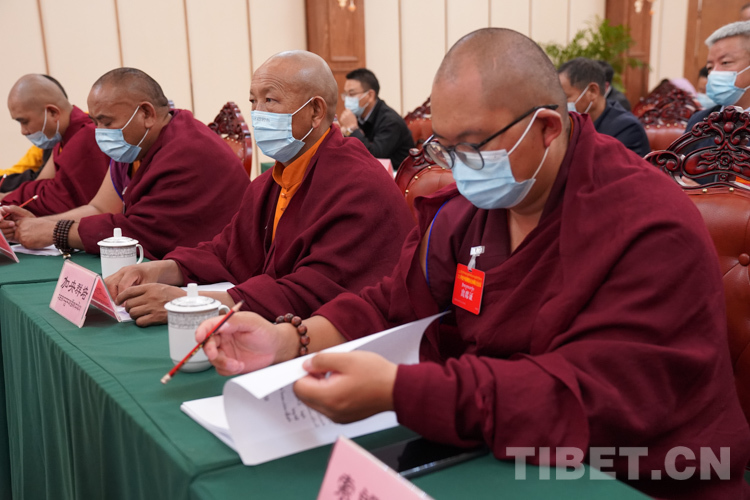 會上,十一世班禪強調,新航標已樹立,新征程已開啟,要牢記囑托、感恩奮進,在推動藏傳佛教中國化上彰顯新擔當。堅持以鑄牢中華民族共同體意識為主線,堅持法治思維、提高管理水平,堅持嚴守戒律、加強教風建設,堅持維護寺廟和諧穩定,堅持開展藏傳佛教教義思想闡釋,堅持培養藏傳佛教代表人士,堅持狠抓機關干部能力建設,確保宗教和睦、佛事和順、寺廟和諧。充分發揚維護祖國統一、加強民族團結的優良傳統,增進“五個認同”,堅持藏傳佛教中國化方向不動搖。健全寺廟管理長效機制,促進藏傳佛教與社會主義社會相適應,發揮自身積極作用,努力為推進高質量發展和守好生態安全底線做出貢獻。以抓好穩定、發展、生態、強邊四件大事的實際行動,為建設團結富裕文明和諧美麗的社會主義現代化新西藏,為實現中華民族偉大復興的中國夢做出新的更大貢獻。(中國西藏網 記者/王淑 趙耀 鄭朔)