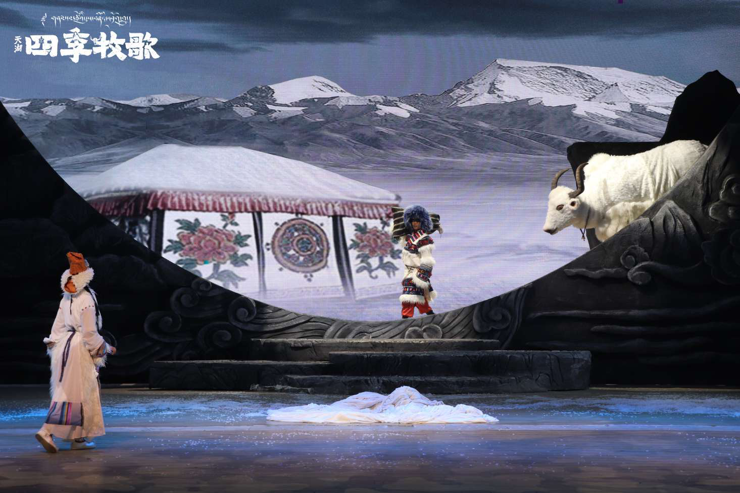 據悉,《天湖·四季牧歌》是由《序·天語》《春·融冰·相遇》《夏·富饒·相識》《秋·豐收·相愛》《冬·尋找·相思》《尾聲·天湖牧歌》六部分組成的多幕劇。
