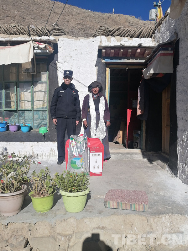圖為達(dá)瓦次仁在芒普鄉(xiāng)普村開展走訪慰問孤寡老人活動