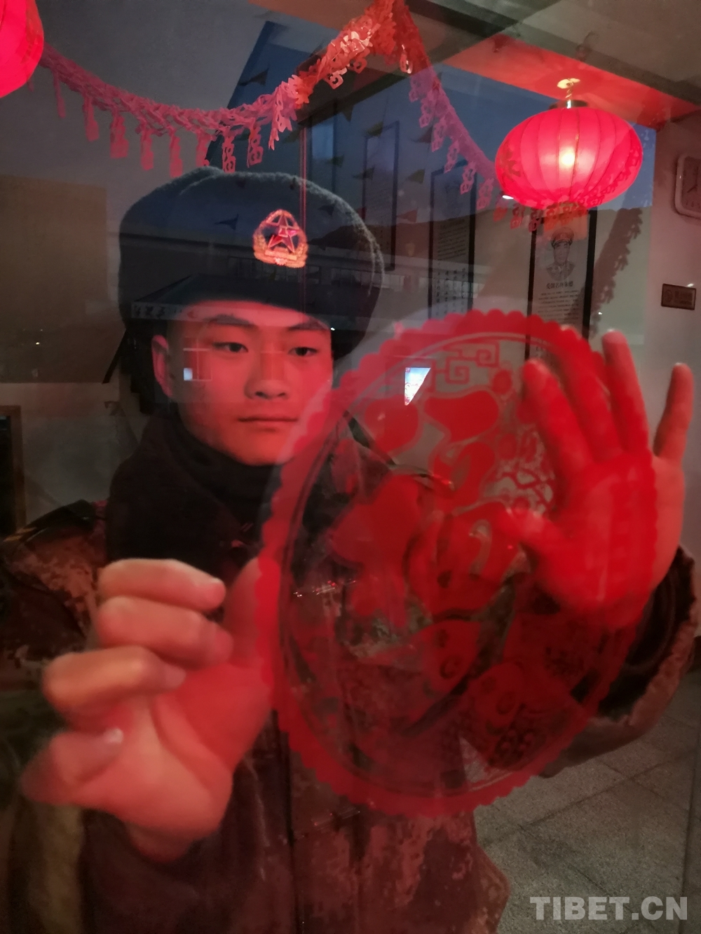近日,駐藏77562部隊43分隊官兵通過掛燈籠、貼春聯、剪窗花等方式親手扮靚營區,喜迎新春佳節。