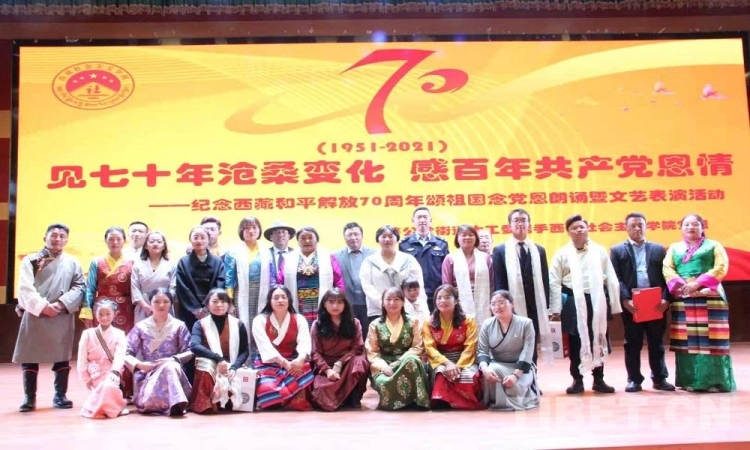 5月23日是西藏和平解放70 周年紀念日。23日上午,由西藏自治區拉薩市蔡公堂街道和西藏社會主義學院共同舉辦的紀念西藏和平解放70周年頌祖國、念黨恩朗誦暨文藝表演活動舉行。現場鮮花嬌艷,燈光炫目,旋律悠揚,歌聲嘹亮。