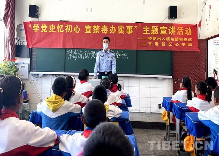 中國西藏網訊 在第34個國際禁毒日到來之際,為進一步深化禁毒宣傳教育,提高轄區群眾對禁毒知識的知曉率,近日,西藏自治區拉薩出入境邊防檢查站聯合空港新區公安局結合“百萬警進千萬家”活動,組織民警成立“宣傳小分隊”,通過進鄉村、進社區、進學校、進企業方式,開展禁毒法治宣傳活動。