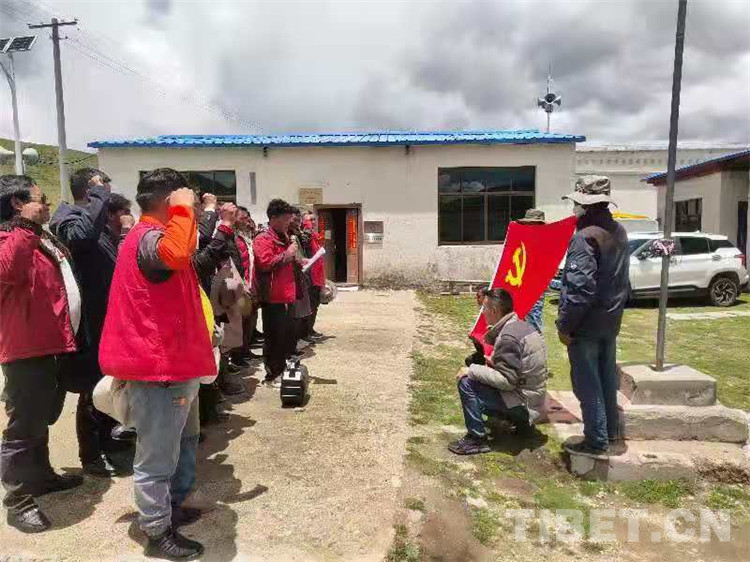 圖為那曲市色尼區油恰鄉干部群眾重溫入黨誓詞 攝影:馬建國