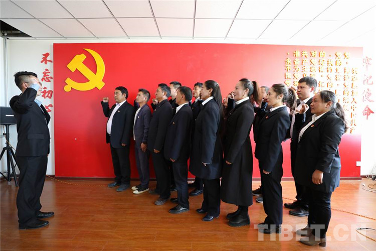 圖為林芝市工布江達縣干部群眾重溫入黨誓詞 攝影:公布