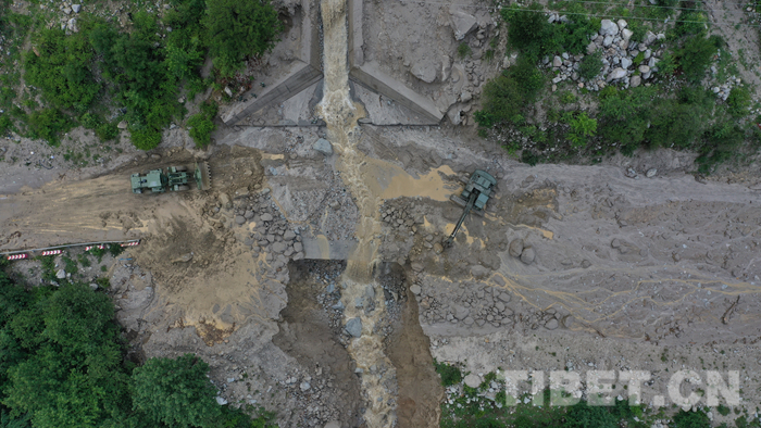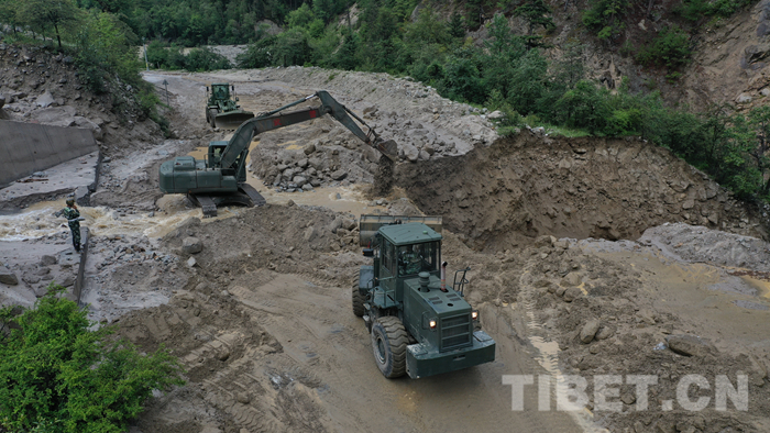 圖為該支隊救援官兵正在對川藏線玉普鄉境內泥石流進行清理