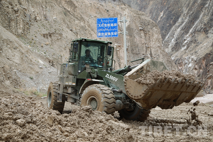 圖為該支隊救援官兵正在對川藏線怒江溝泥石流災害進行搶通