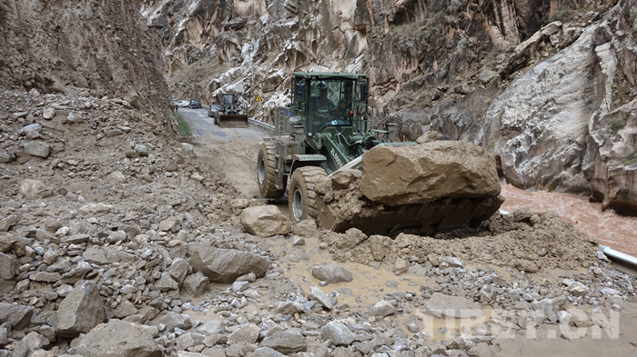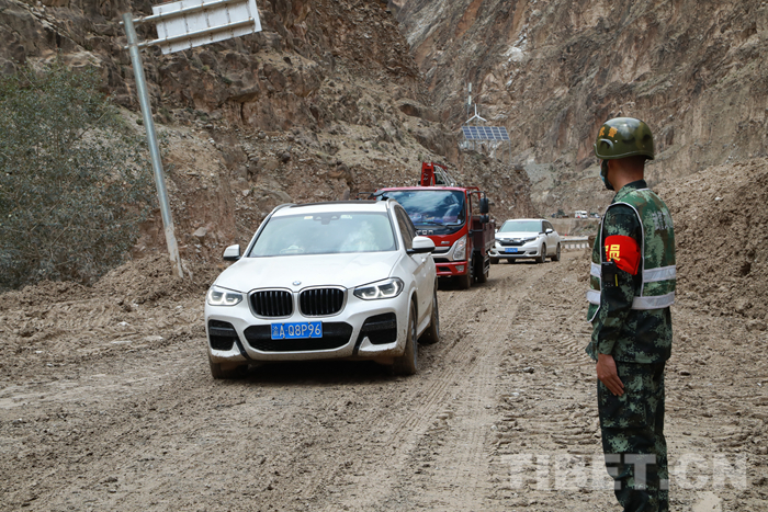 圖為川藏線波密縣境內玉普鄉境內泥石流受損道路