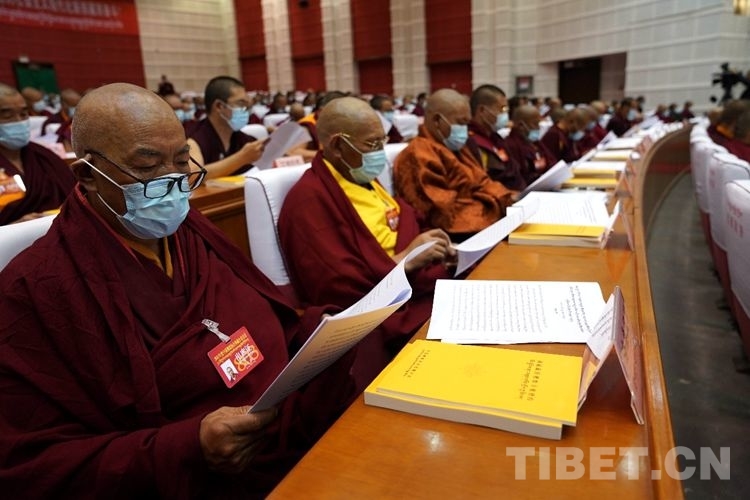 圖為中國佛教協會西藏分會第十一屆理事會第二次理事會會議閉幕會現場 攝影:王淑