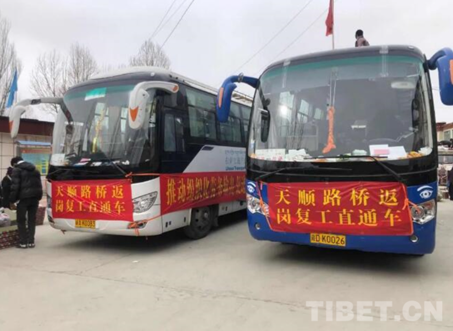 去年3月,面對突如其來的新冠肺炎疫情,日喀則市江孜縣對首批前往天順路橋建設項目組施工地的115名務工人員,統一安排9輛運輸車開啟“一站式”免費直達運輸服務。衛生防疫工作人員對專送車輛提前進行消毒,并為務工人員進行身體健康檢查,統一配發防護口罩,確保了農牧民在保障自身安全的同時能安心外出就業。