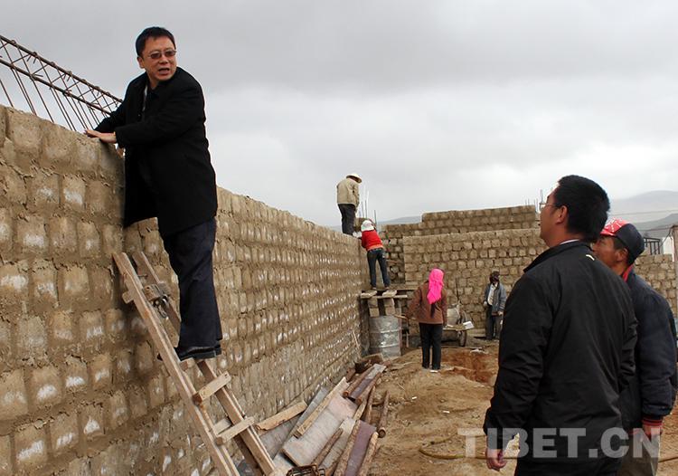 圖為中國石化第五批援藏干部、班戈縣常務副縣長潘峰(左)和副書記陳志清(右)在班戈縣鄉下檢查牧民定居房的施工情況(唐召明2011年6月25日攝)