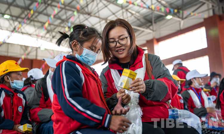 9月15日,2021“同心·共鑄中國心·同心手拉手”助學活動走進西藏自治區拉薩市當雄縣納木湖鄉中心小學開展物資捐贈、愛心拍賣和“一對一幫扶”等公益活動,為海拔4700余米的高海拔學校送來祖國各地的溫暖。