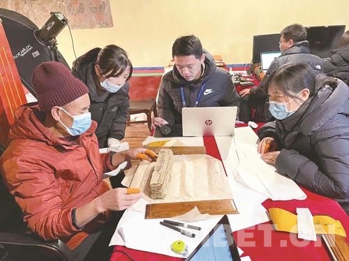 圖為工作人員對古籍文獻進行登記、整理、分類、對勘 西藏自治區文物局供圖