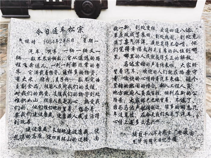 為更好地讓廣大干部群眾和八方游客了解筑路運(yùn)輸?shù)钠D難困苦、順利通車波密時的動人場景,2021年12月,波密縣對廣場進(jìn)行了提檔升級,從尊重歷史的角度,進(jìn)一步論證規(guī)范了廣場名稱。“波密通車紀(jì)念廣場”八個鮮紅大字仿佛在講述那段激情燃燒的崢嶸歲月,紅色的碑文篆刻著筑路部隊(duì)驚心動魄修筑康藏公路時的艱辛與磨難,王笑雨同志的日記記錄著汽車駛?cè)氩軙r干部群眾臉上的激動與新奇……教育、激勵和引導(dǎo)廣大干部群眾堅(jiān)定不移感黨恩、聽黨話、跟黨走。(中國西藏網(wǎng) 圖文/波密縣組織部紅色工作專班)