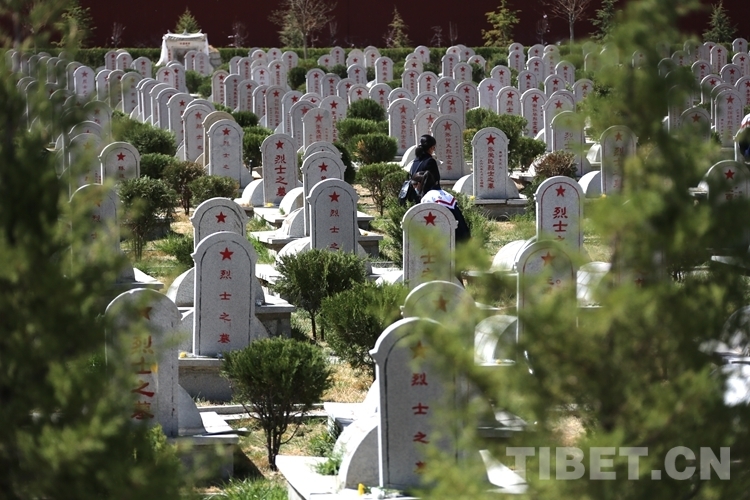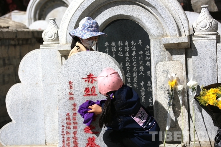 拉薩市烈士陵園內,一座座墓碑整齊排列,訴說著一個個不同歷史時期的英雄壯歌。兩個小女孩靈動的身影在其間來回穿梭,不停地拿手中的抹布擦拭墓碑,還時不時向身旁的母親詢問著英雄的故事。