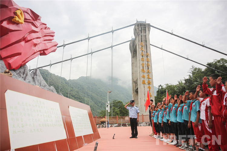 圖為背崩邊境派出所民警在解放大橋愛國強邊教育基地為學(xué)生講解“老墨脫精神”