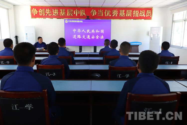 圖為昌都市森林消防支隊江達縣中隊指戰員學習《中華人民共和國道路交通安全法》