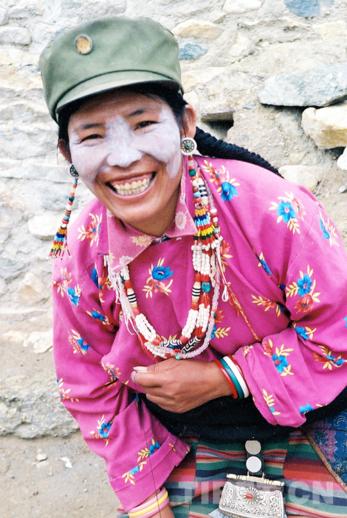 這是藏北尼瑪縣文部鄉過去使用牦牛奶來保護皮膚的藏族婦女(唐召明2001年攝)