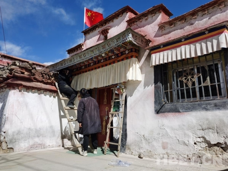 藏歷水虎新年來(lái)臨之際,查斯和次德吉一起更換香布 攝影:歐帆