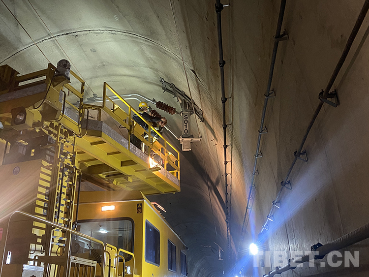 中國西藏網(wǎng)訊 初冬時節(jié),雅魯藏布江畔,秋葉繽紛、層林盡染。在穿山過江的拉林鐵路桑珠嶺隧道內(nèi)機器轟鳴、人聲鼎沸。11月14日10時25分,中國鐵路青藏集團(tuán)有限公司拉薩基礎(chǔ)設(shè)施段桑日綜合維修車間的接觸網(wǎng)工陳世召頭戴安全帽、身穿防雨服、腳踩絕緣靴,手中的高壓水槍迸射出道道白色弧線。