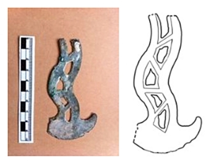 圖為西藏自治區那曲市安多縣布塔雄曲一號墓出土的銅鉞形器