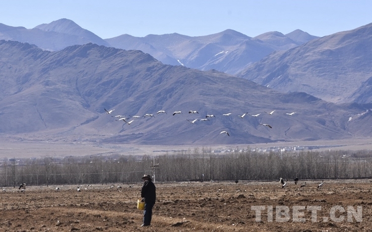 旦增是位老黨員,2015年,被林周縣林業(yè)局聘為巡護(hù)員,成為巡護(hù)區(qū)域野生鳥(niǎo)禽的“守護(hù)者”。每年10月底至次年3月,成群的黑頸鶴在林周縣澎波河流域濕地過(guò)冬,是旦增最為忙碌的時(shí)期。